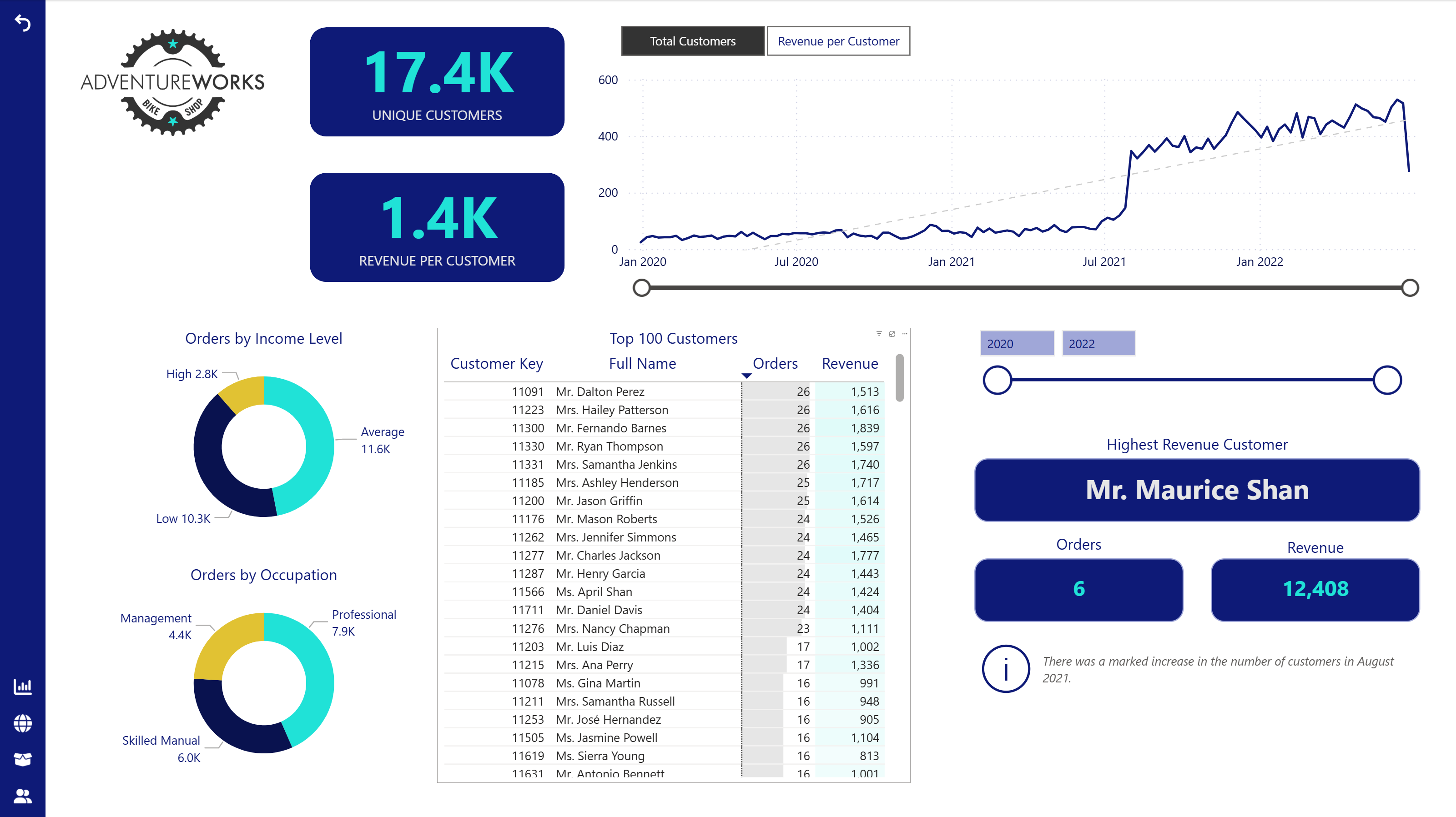 - Customer and regional performance breakdown